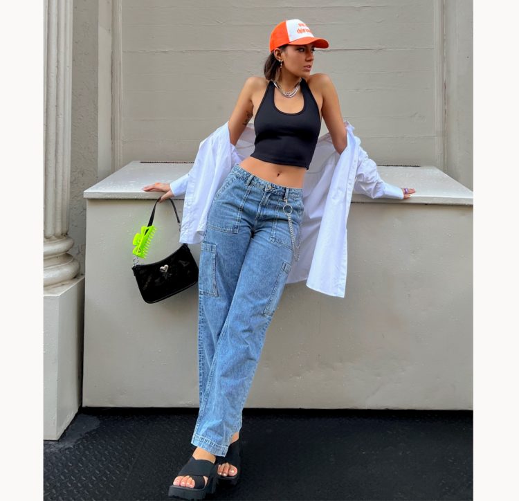 There’s a lot to be creative with here. What sparks your vibe? Colour-blocking, pattern-mixing, lots of accessories, or classic baggy denim? Find out by playing around with the trends and this season’s key items.